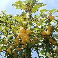 C’est une petite prune ronde, de couleur jaune, parfois recouverte d’une mince couche cireuse et comestible appelée pruine. C’est un excellent fruit de bouche, au goût plus délicat qu’une simple prune. Il se consomme à maturité, de la mi-août à la mi-septembre.